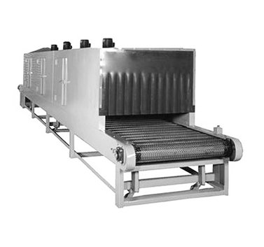 物料由加料器均匀地铺在网带上,网带一般采用12~16目的的不锈钢丝网(也可根据物料不同选择不同的网带钢带),由转动装置拖动在干燥机内移动。干燥机由若干单元组成,每一单元热风独立循环,部分尾气由专门的排湿风机排出,废气排出量由调节阀控制。热气由下向上穿过铺满物料的网带,完成热量与质量的传递过程,带走物料水分,从而实现干燥过程。网带允许的速度可根据物料温度、水份要求自由调节,单元数量也可根据需要选取。